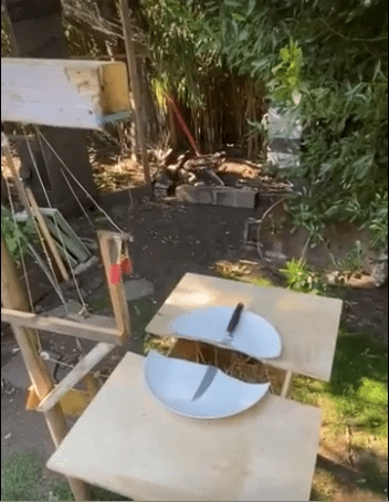David Gifford makes Rube Goldberg Machines in his backyard modelling the global, inevitable, cumulative and irreversible. His further transgressions with gravity will be illustrated in the premiere of his latest assembly for FOT2FOF, of which the first cause is an apple falling from a tree.